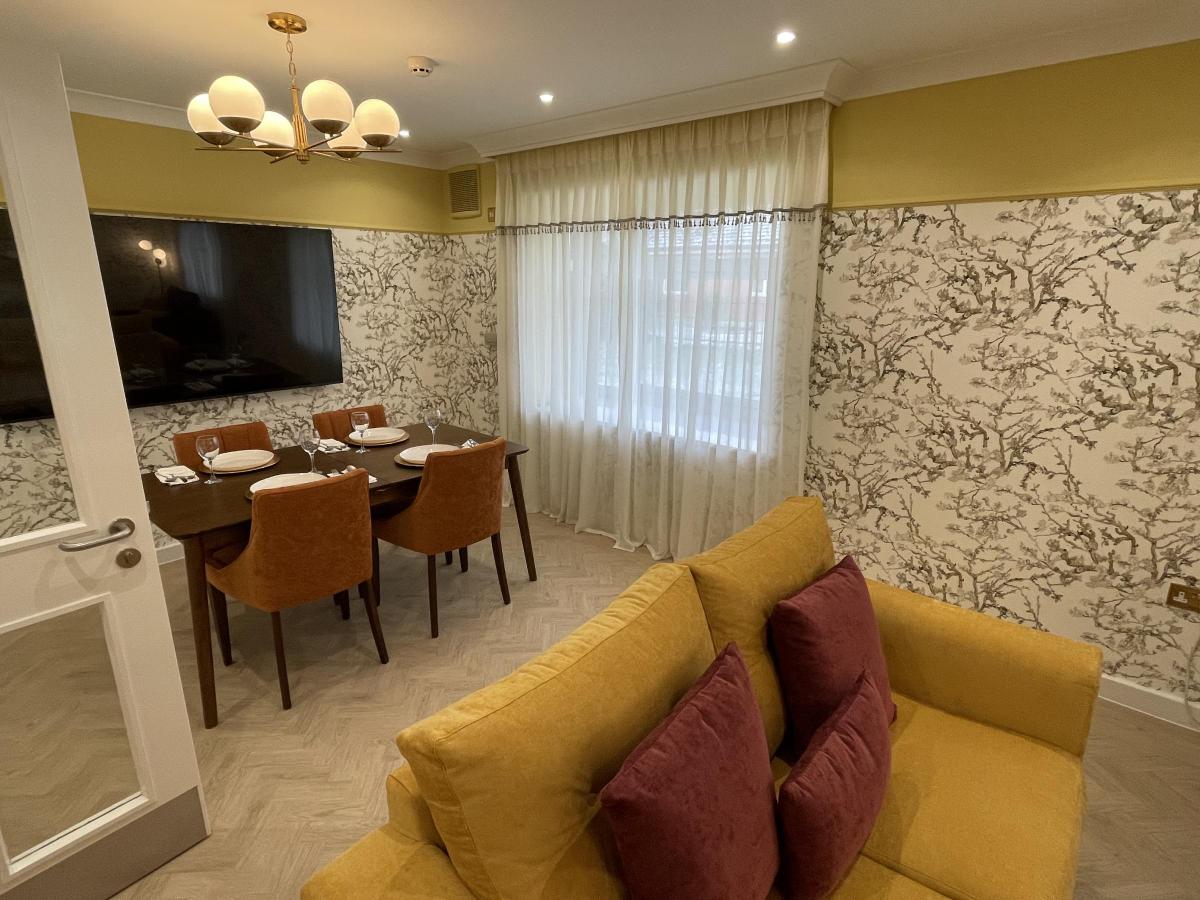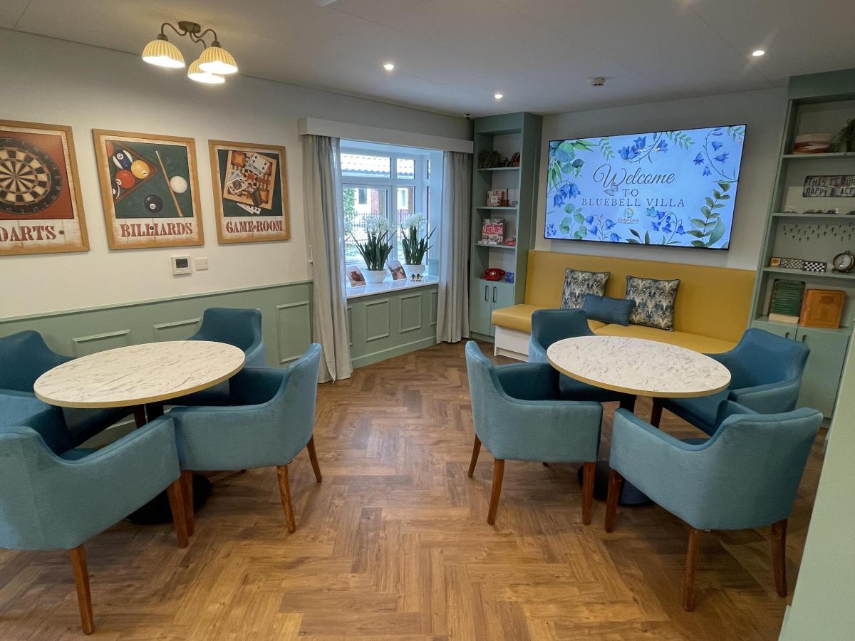 Bluebell Villa has been carefully designed to support people living with the early stages of dementia, with familiar interiors, calm spaces and thoughtful details throughout. From the 1960s-inspired sitting area to the cinema room, courtyard, family room and on-site physiotherapy, every space has been created to help Residents feel comfortable, engaged and at home.