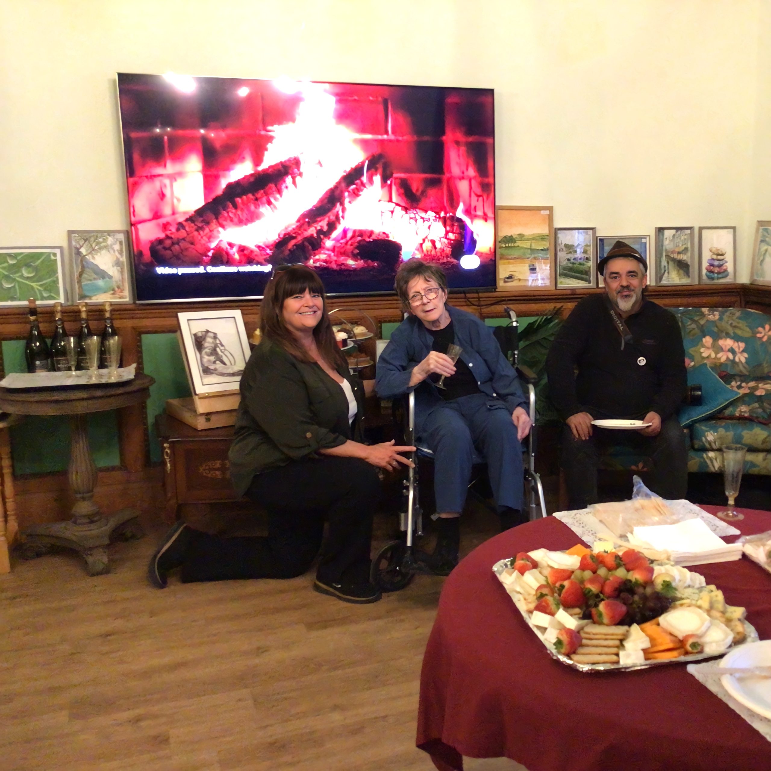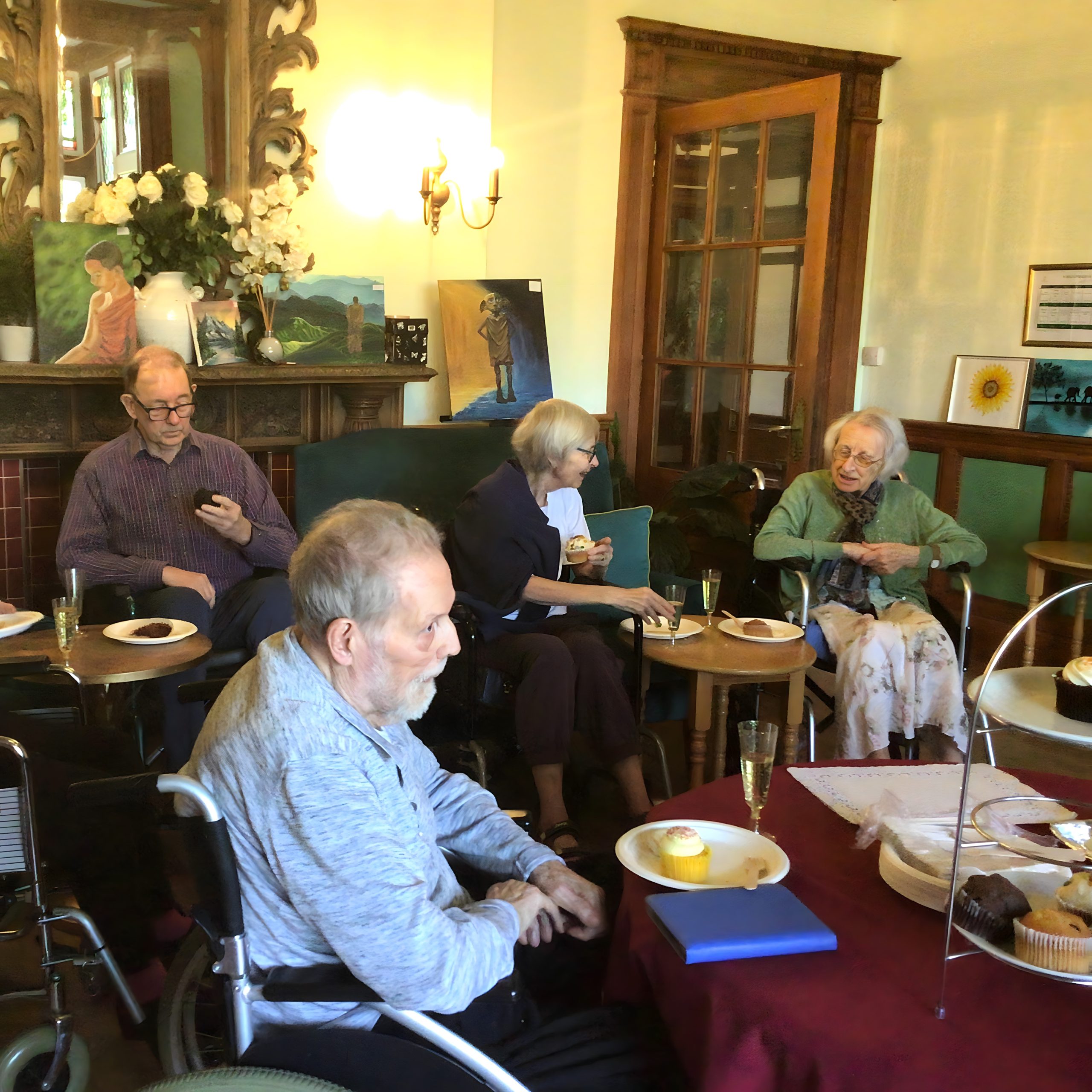 The afternoon was well attended, with Residents and families taking the opportunity to view the artwork and catch up with one another. With cheese and crackers, fresh fruits, Prosecco, and cakes on the tables, it felt like a gentle celebration of community and creativity.