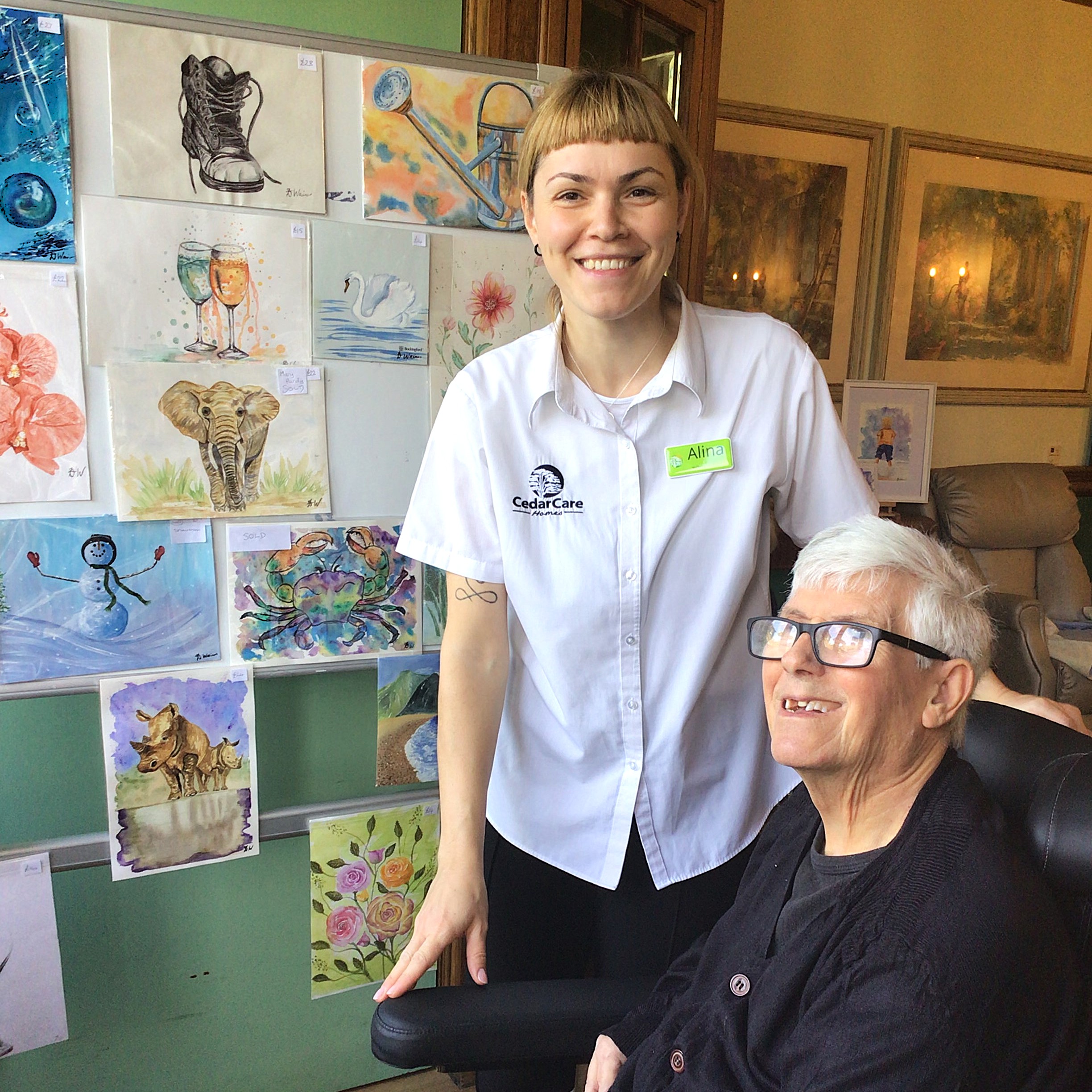 Our Residents and their families had such a wonderful time at our art exhibition, admiring the beautiful paintings created by our lovely hairdresser, Della.
