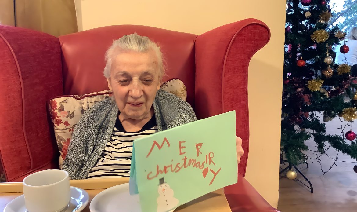 As we look back on our Christmas celebrations, we wanted to share a few heart-warming moments from Christmas at Woodside. As part of our Christmas card exchange, our lovely Resident Beryl was delighted to open her Christmas card from a pupil at St Edward’s School, and that brought such a bright smile to her face.